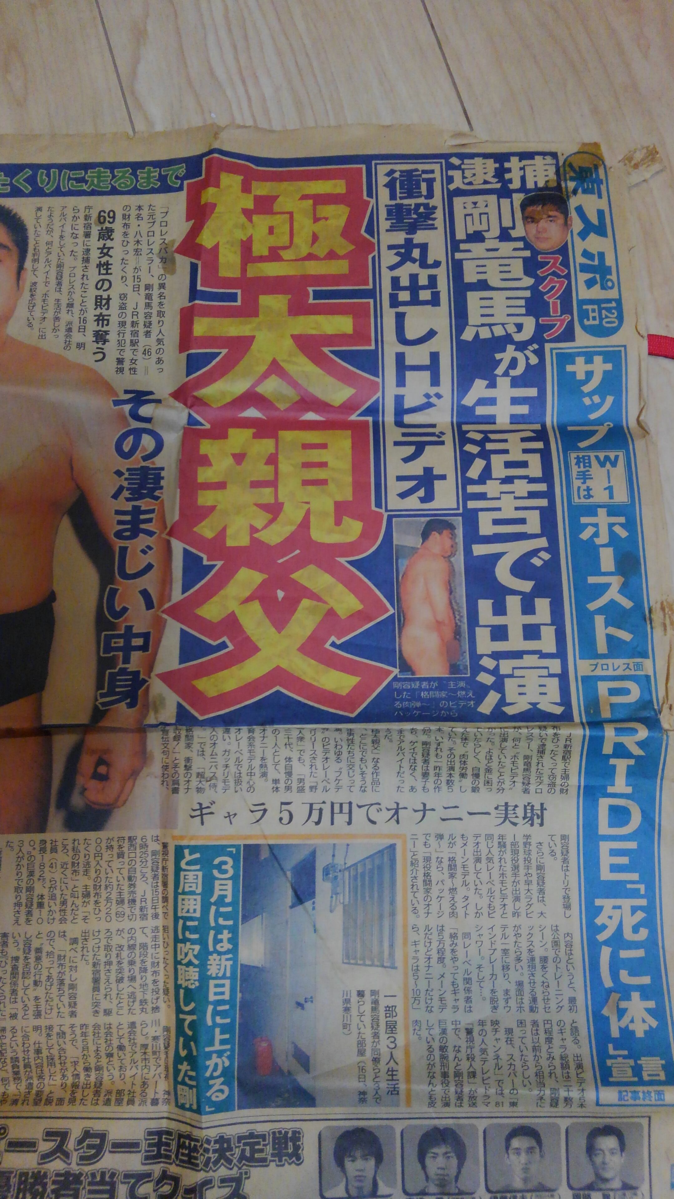 あの剛さんがひったくりで逮捕されただけでなくホモビデオに出ているとのニュース。