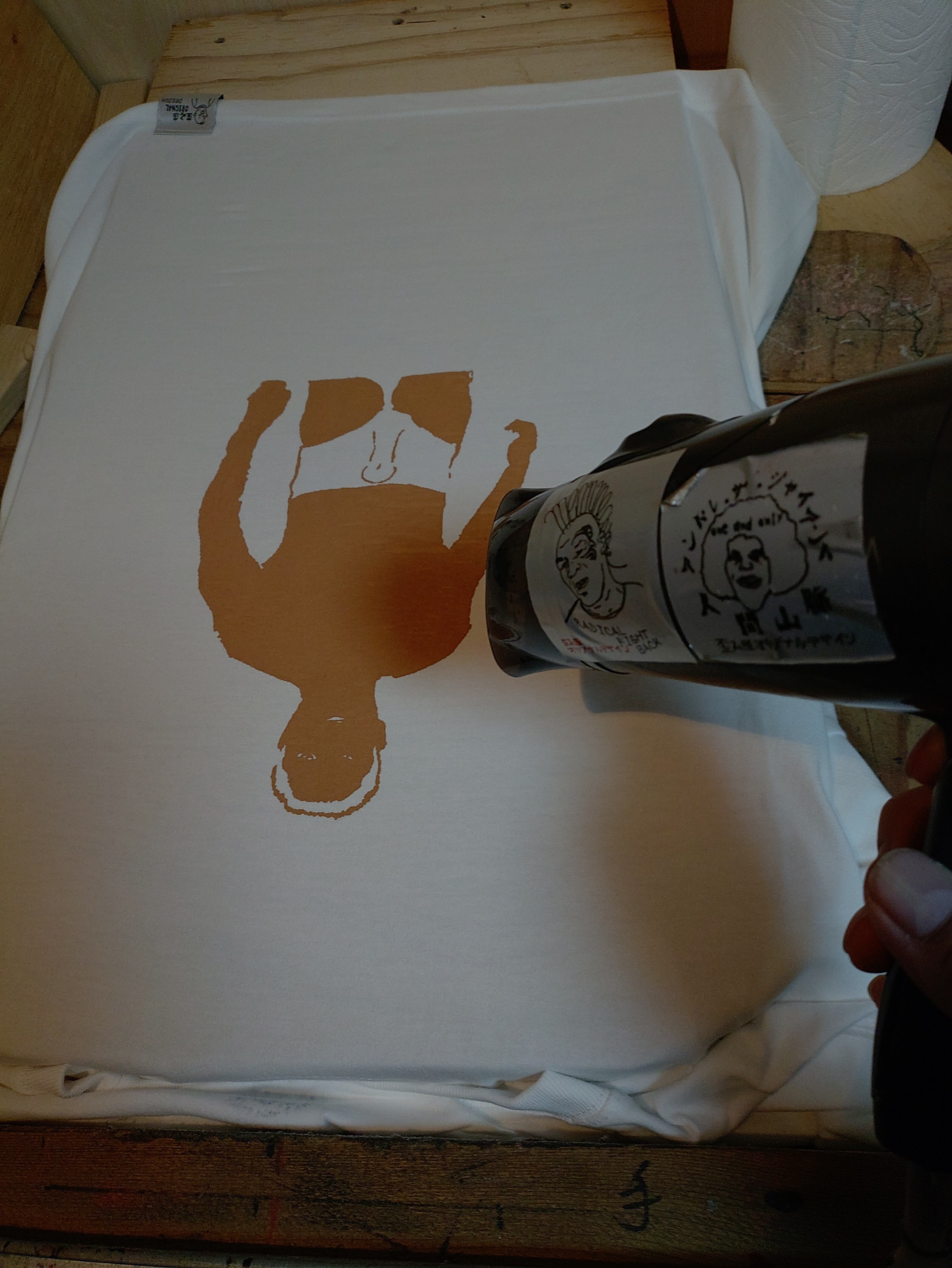 プリントは水性インクで、一枚、一枚、手刷りで、プリントしています。 Tシャツの素材は、cotton100%の、 6.2oz(オンス)をヘビーウェイトTシャツです。 しっかりとした生地で、着心地もよく洗濯にも強いヘビーウェイトTシャツです。